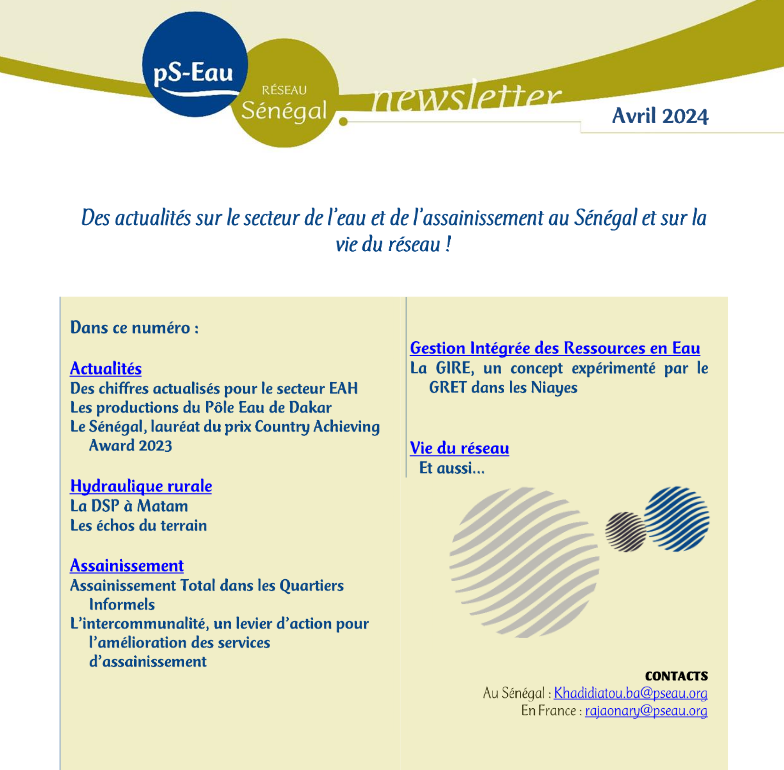 Cette newsletter est diffusée par le pS-Eau au « réseau Palestine », qui s’adresse aux acteurs de coopération décentralisée et non gouvernementale français intervenant au Palestine sur les secteurs de l’eau, l’assainissement et la gestion et protection des ressources en eau.
